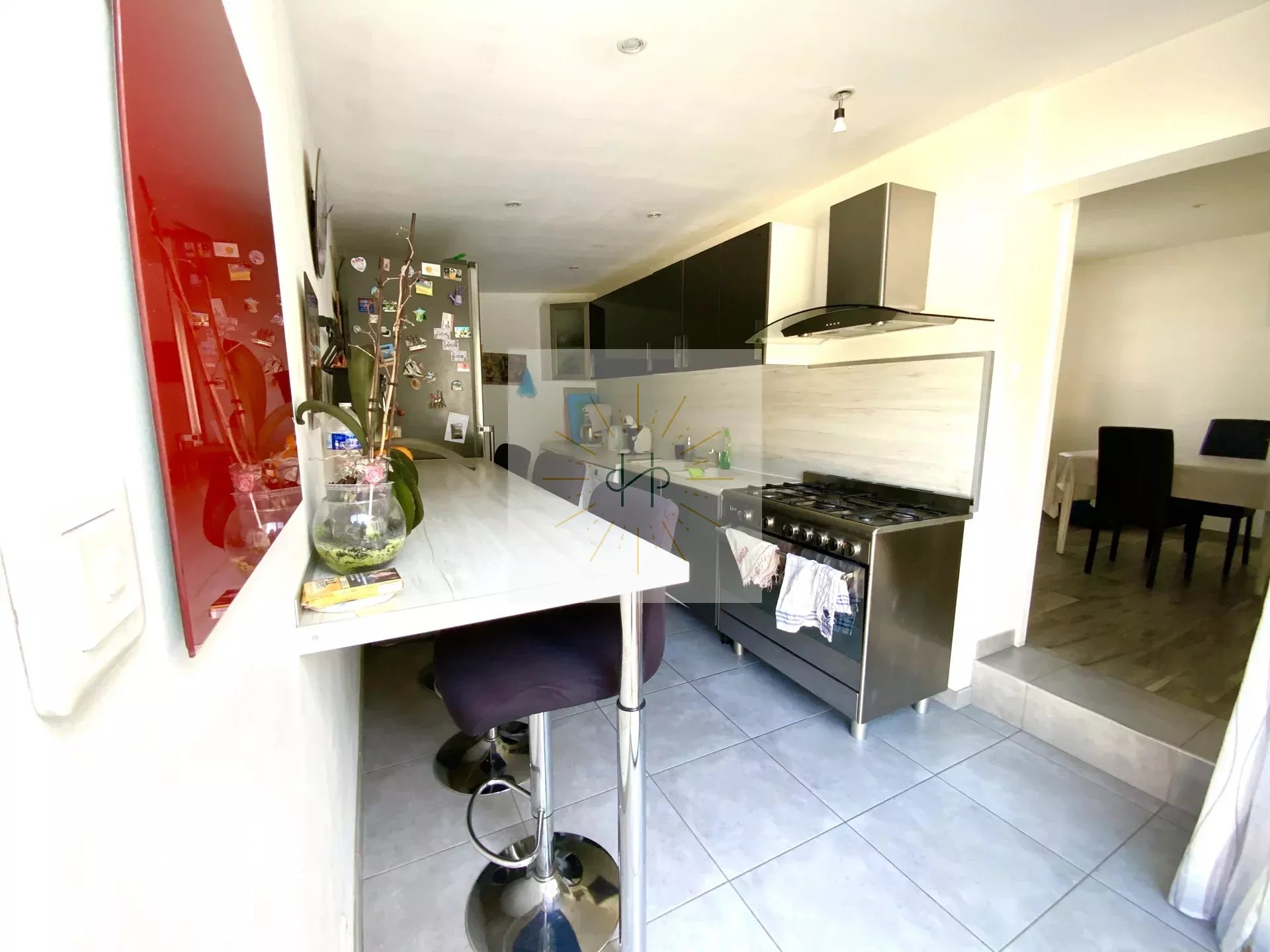 La cuisine moderne est entièrement équipée et s'ouvre sur une terrasse ensoleillée où vous pourrez profiter de moments de détente ou de repas en plein air.