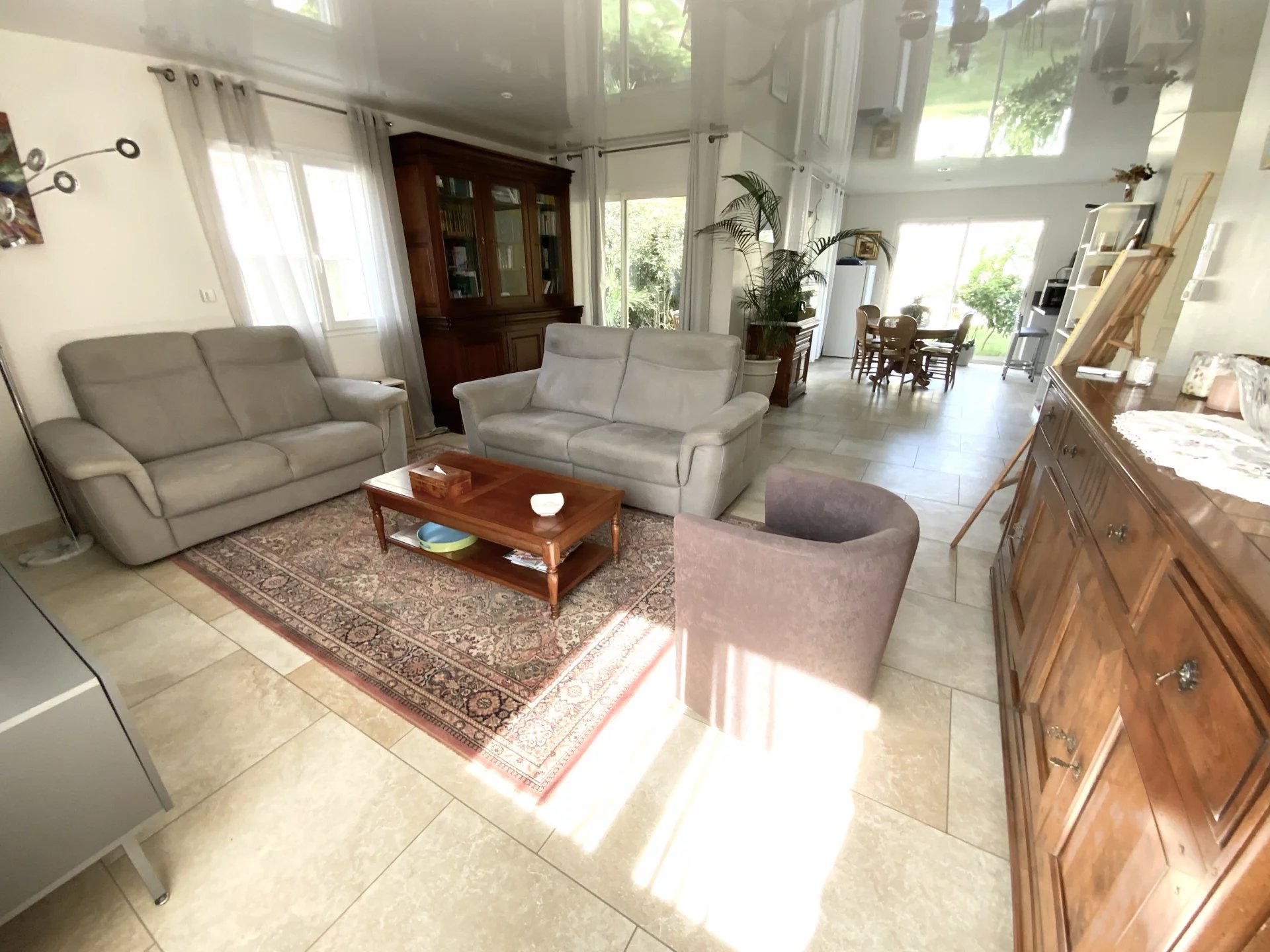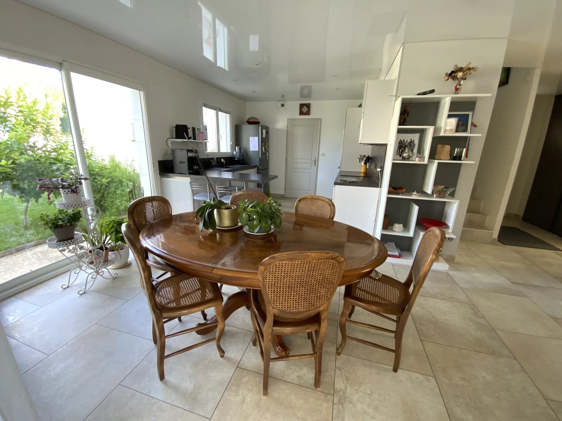 Au rdc vous découvrirez une cuisine équipée s’ouvrant sur la salle à manger et un extérieur arboré sans vis à vis qui se complète d’un salon spacieux est idéal pour la détente en famille.