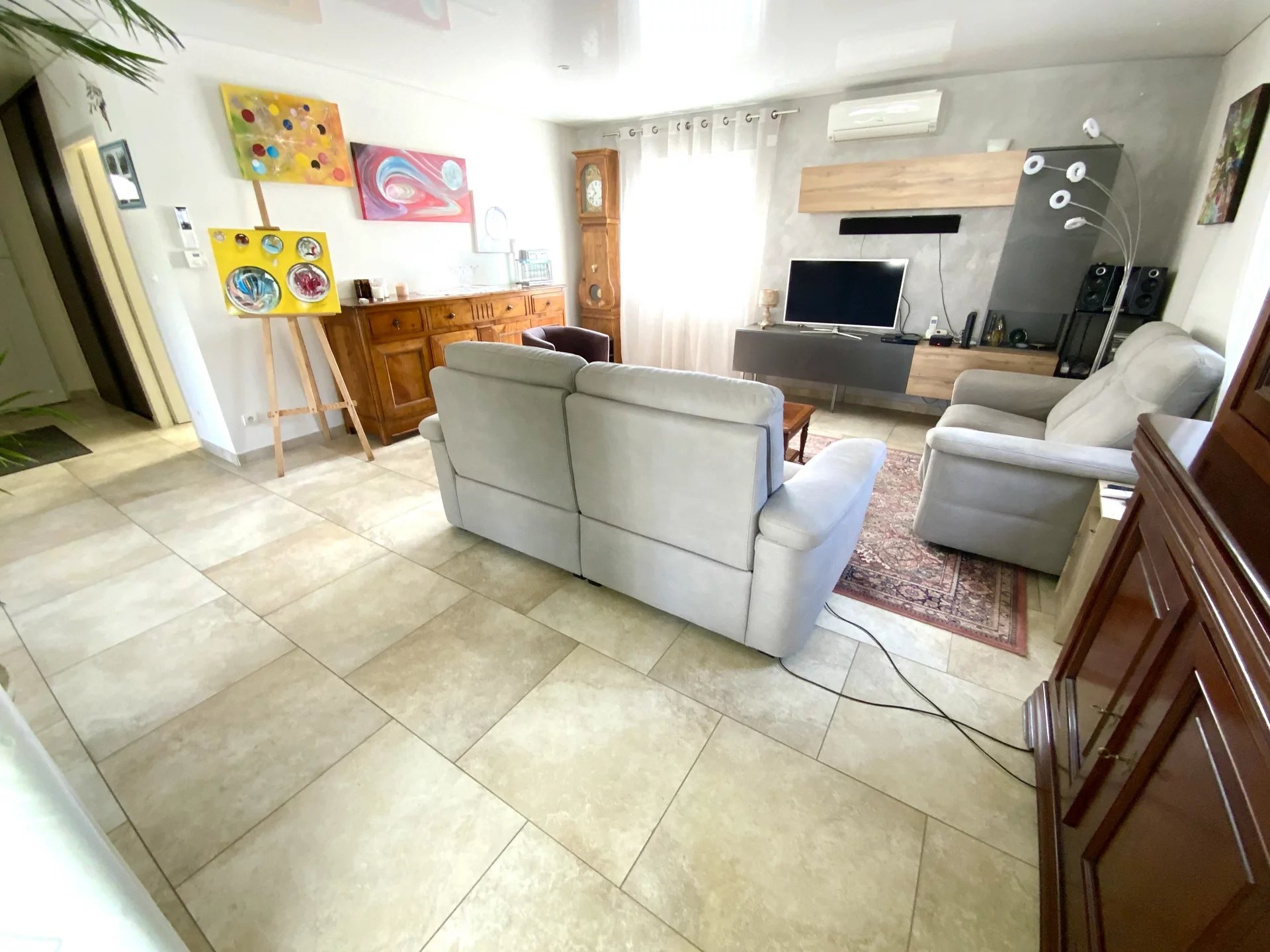 La maison est dotée de panneaux solaires, de volets électriques et d'un adoucisseur d'eau, assurant une efficacité énergétique optimale.