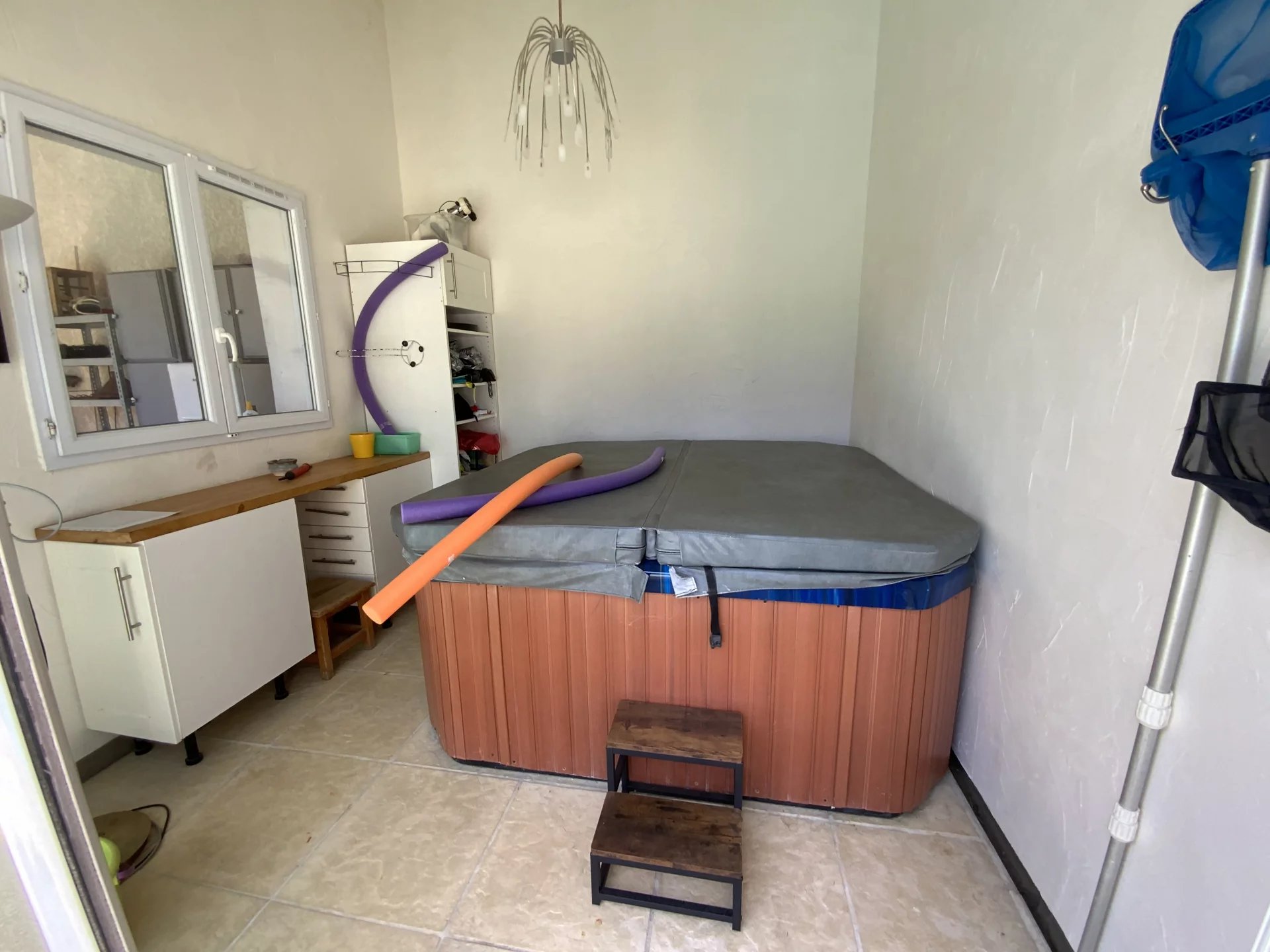 A ses côtés vous aurez une belle cuisine ainsi qu’une pièce avec un jacuzzi