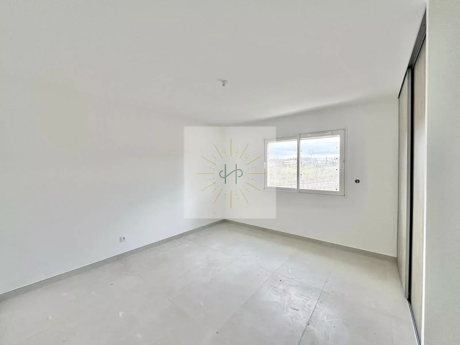 Cette maison neuve séduit également par la qualité de ses prestations, avec un chauffage au sol chauffant et rafraîchissant, des volets roulants électriques...