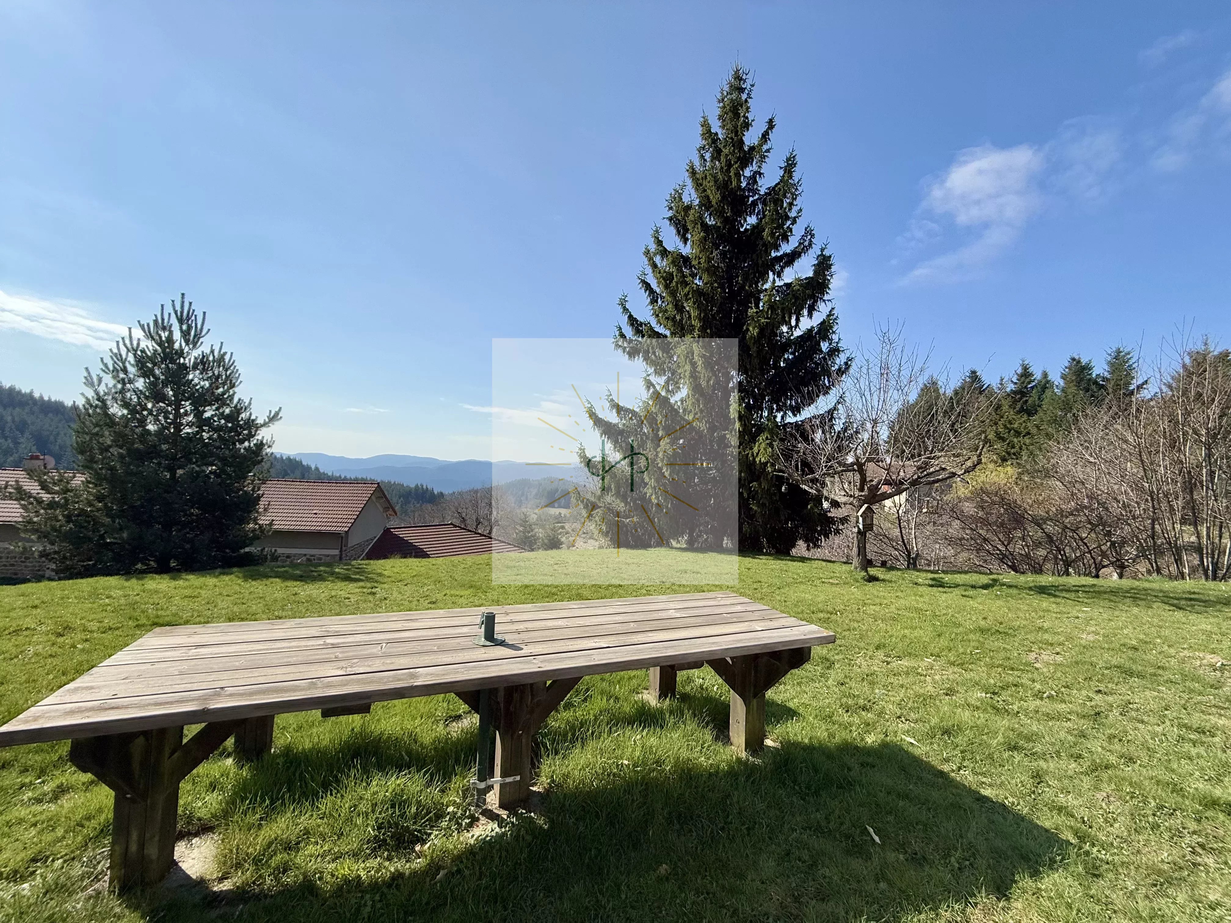 Envie d'un bol d'air ? Installez-vous à une table dans le jardin et admirez la vue au loin.
